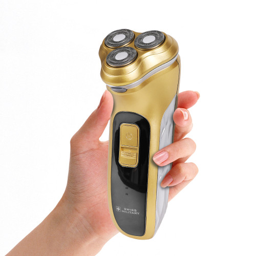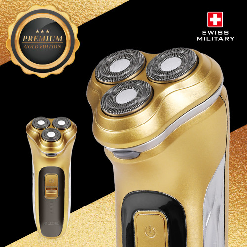 - 스위스밀리터리 미라스 충전식 3중날 프리미엄 골드 전기면도기 SMS-W900