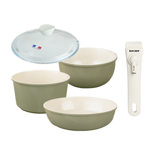 - [알루아트] 매직그립 매트그린 5P세트_인덕션겸용(냄비18+웍20+팬26+뚜껑18+핸들)