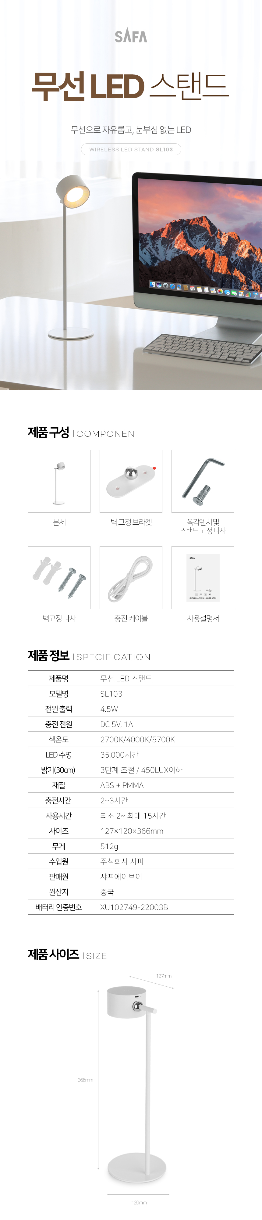 - [사파] 다기능 무선 감성 인테리어 LED 스탠드 SL103