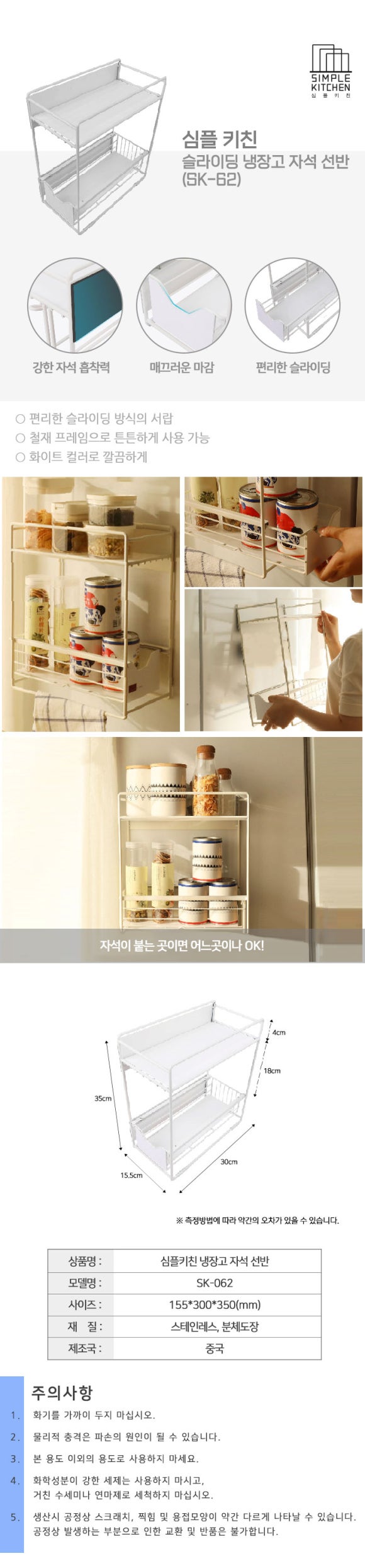 [심플키친] 슬라이딩 냉장고 자석 선반 SK-062