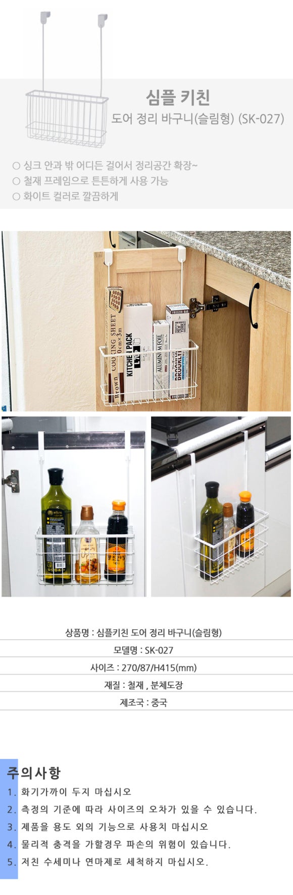 [심플키친] 도어 정리 바구니 슬림형 SK-027 (도마, 주방용품, 수납)