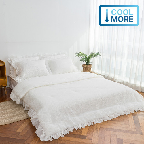 - [여름침구대전]크리미 뱀부 시어서커 & 아사면 양면 여름 이불+베개커버+패드 침구세트