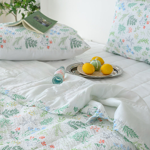 - [여름침구대전]플라워 패턴 델마 리플 시어서커 & 듀라론 양면 여름 이불+베개커버+패드 침구세트