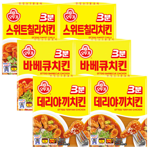 - 오뚜기 3분 스위트칠리치킨 2개+바베큐치킨 2개+데리야끼치킨 2개