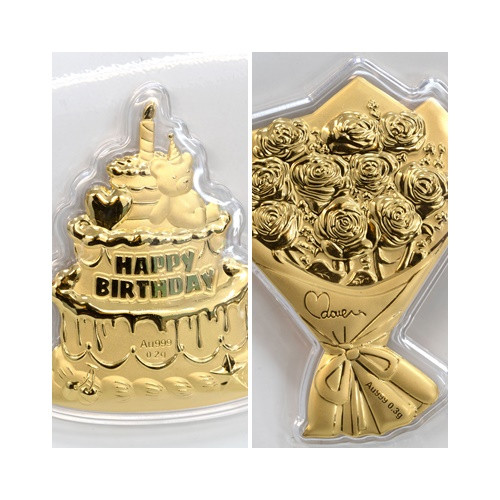 - 24K 순금 생일케익 꽃다발 (0.2g/0.3g) 저중량 초경량 행운 가득 미니 선물 - 생일, 기념일 강추