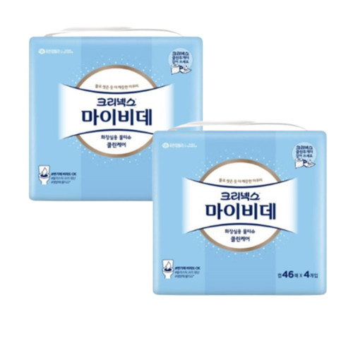 • [크리넥스] 마이비데 클린케어 화장실용 물티슈 46매 4입 (2팩,4팩,8팩)