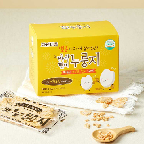 • [자연다움] 쌀눈이 그대로 살아있는 바삭 현미 누룽지 330g (33g*10개) X 5개