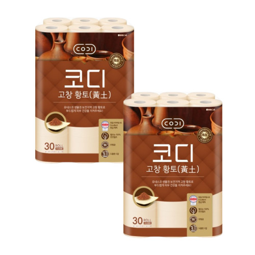 • [코디] 고창 황토 화장지 30m 30롤 (1팩,2팩,3팩 선택 구성)