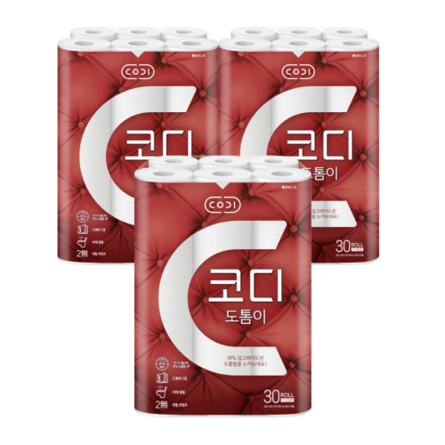 [코디] 도톰이 화장지 30m 30롤 (1팩,2팩,3팩 선택 구성)