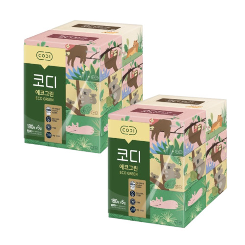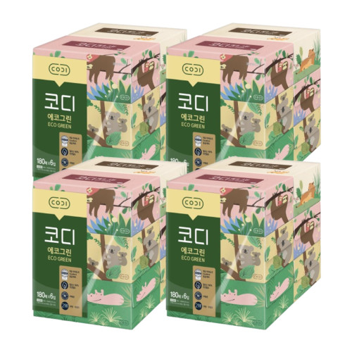 • [코디] 에코그린 미용티슈 180매 6입 (1팩,2팩,4팩 선택 구성)