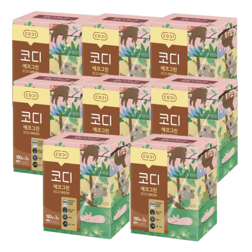 [코디] 에코그린 미용티슈 180매 3입 (1팩,2팩,4팩,8팩 선택 구성)