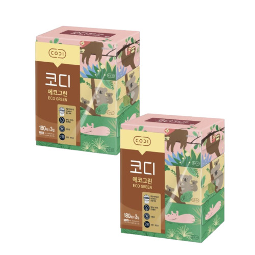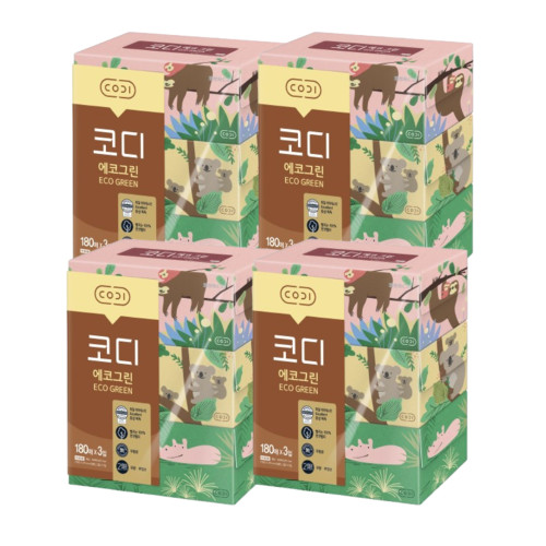 • [코디] 에코그린 미용티슈 180매 3입 (1팩,2팩,4팩,8팩 선택 구성)