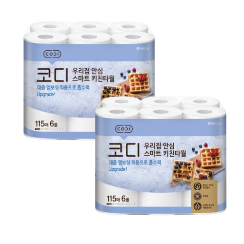- [코디] 우리집 안심 스마트 키친타월 115매 6입 (1팩,2팩,6팩 선택 구성)