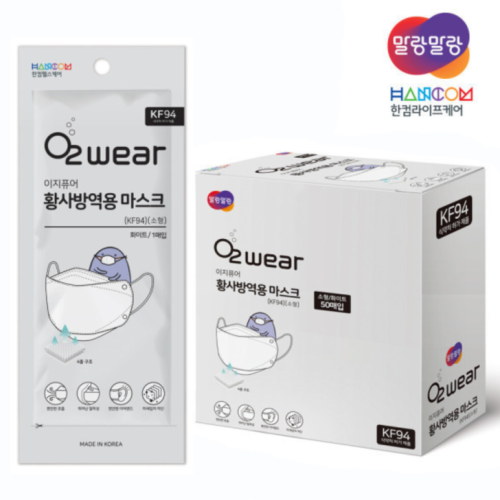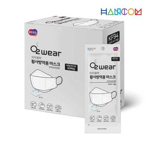 - 한컴 오투웨어 이지퓨어 KF94 미세먼지 귀 안아픈 황사 숨쉬기 편한 보풀없는 개별포장 50매입