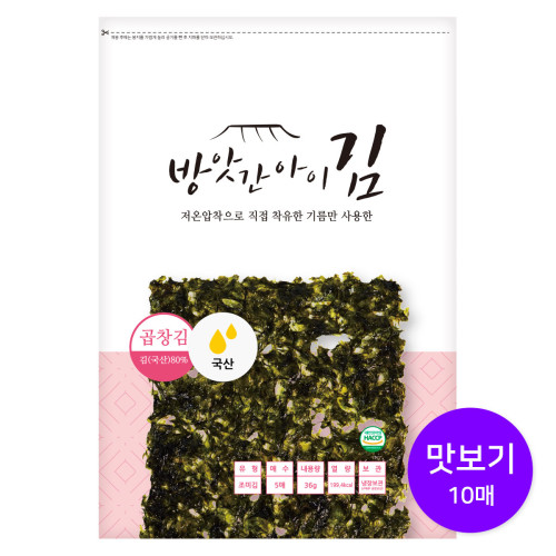- [방앗간아이] 맞춤조미 직접짠 국산기름만 바른 즉석구이김 10매