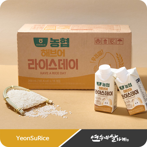 - 해브어라이스데이 쌀음료 (200mlX18팩) 1박스 단백질 필수아미노산 우리쌀100% 동밀양농협