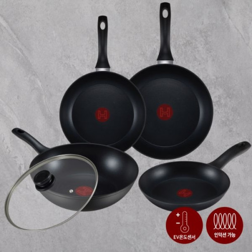 - [해피콜] 센팬 IH 5종 프라이팬세트(20cm+24cm+28cm+28cm궁중+28cm 유리뚜껑)